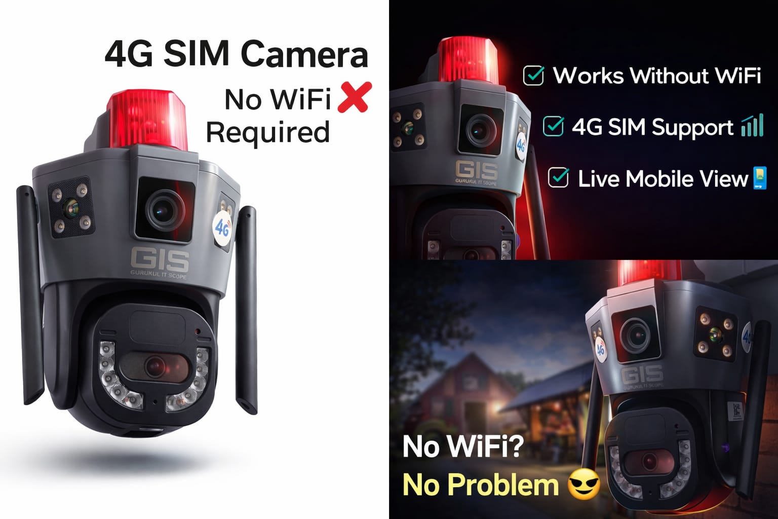 GIS 4G SIM Smart AI Security Camera (No WiFi Required, 360° View, Night Vision, Motion Alert)