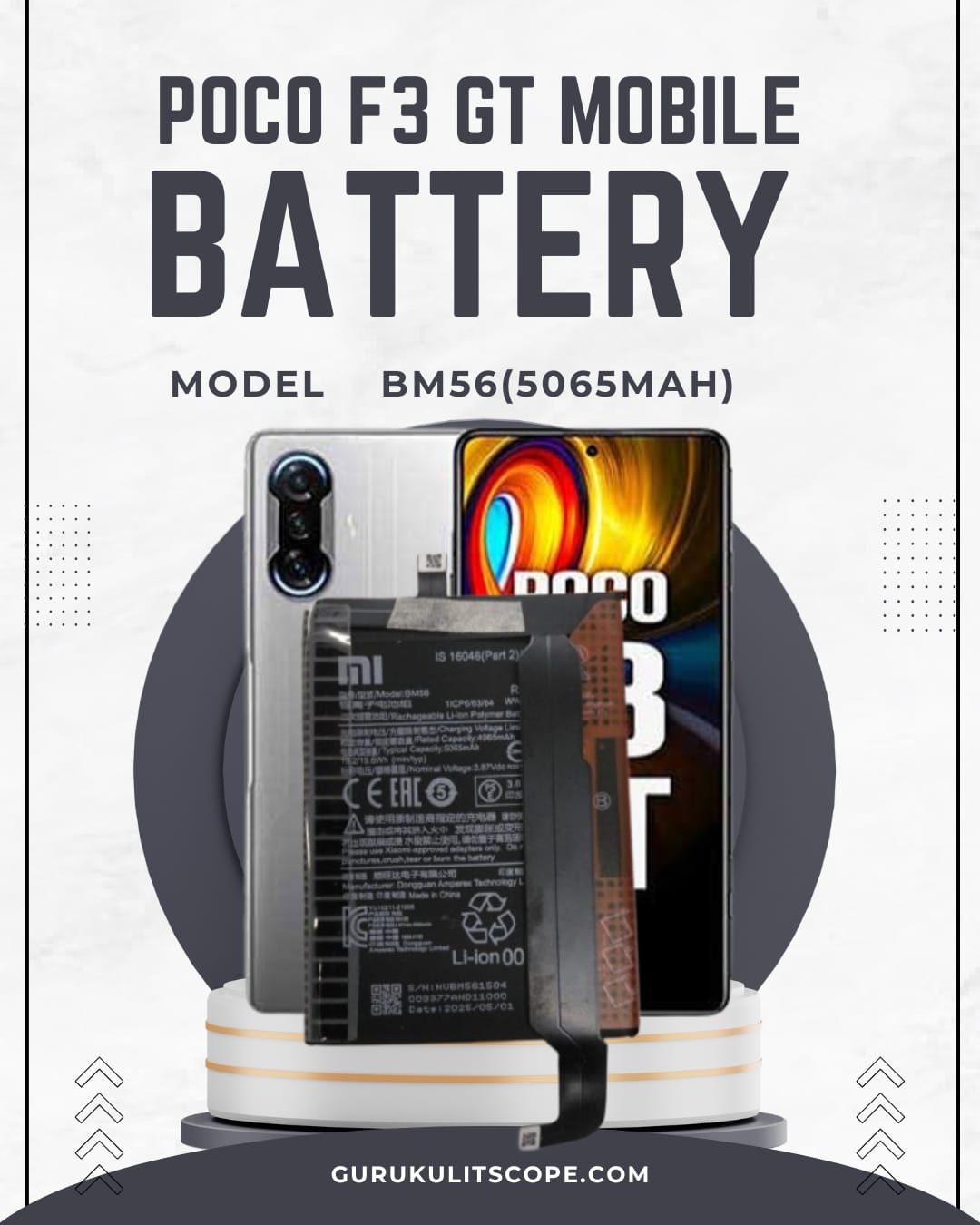 High-quality BM56 replacement battery for Poco F3 GT smartphone. Provides long-lasting backup, stable performance, and safe charging with 5065mAh capacity.